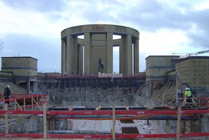 Bouwen van bezoekerscentrum en schietclub onder het Albert I monument.
