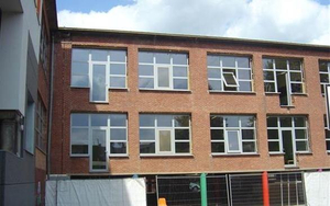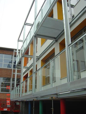 Evacuatieplatform aan bestaand schoolgebouw.